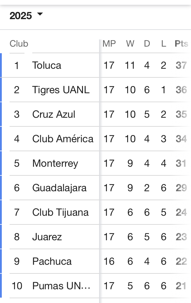 Las Semifinales del Clausura 2025 i -Cruz Azul 1vs Tigres 1 – Rayados de Monterrey vs Toluca